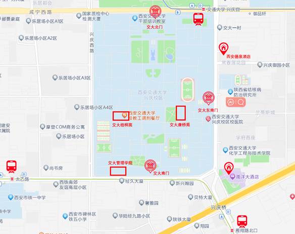PS:直接到南洋大酒店,建议选择5号线雁翔路北口地铁站D口出,步行到南洋大酒店;直接到德泉酒店,建议在2号线钟楼站或4号线大差市站换乘6号线至交通大学·兴庆宫站D口出,步行至德泉酒店