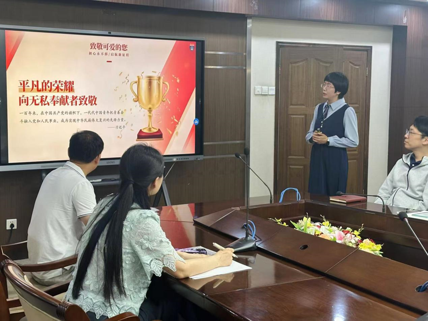 耿葳同志带领大家一同回顾了5月的支部活动。从理论学习的深入研讨,到实践活动的扎实开展,每一项工作、每一次活动都凝聚着支部全体同志的力量。随后,她宣读了优秀共产党员表彰决定:一张张珍贵的照片、一段段难忘的回忆,带领大家共同回顾了罗江海老师光荣在党 20 年的珍贵瞬间。这些画面,不仅是罗江海老师党员生涯的缩影,更展现了一位老党员对党的忠诚与坚守。