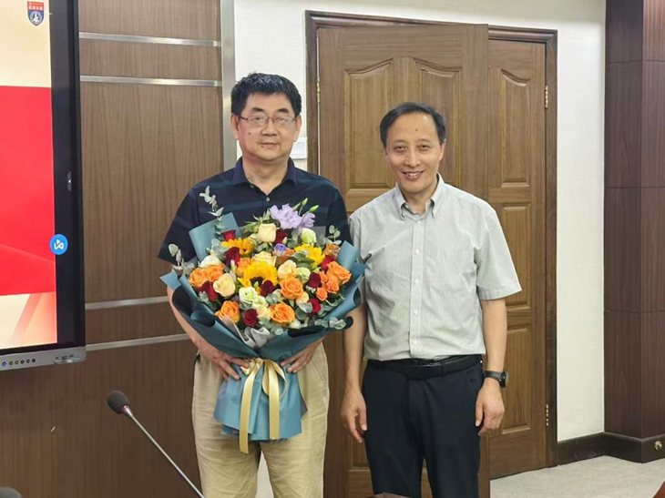 任博尘同志代表支部赠送纪念品,他动情地说:“罗老师用实际行动诠释了共产党员的责任与担当,在工作中,他总是冲在最前面,解决了许多紧急问题,是我们工作中的榜样。希望罗老师退休生活愉快,常回来看看。”