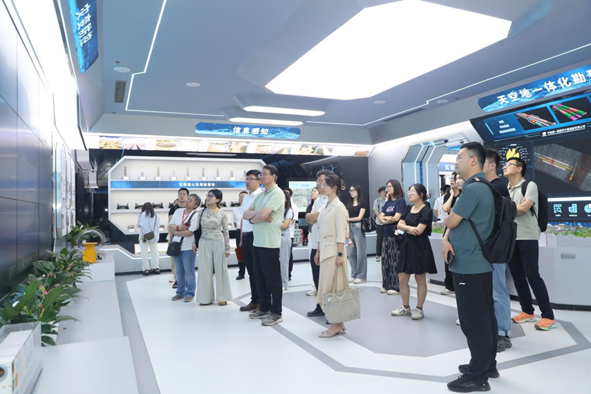 师生代表先后参观了铁一院院史展览馆、科创馆,了解了铁一院的历史沿革、人才团队、业务范围,以及近年来依托全国重点实验室取得的科技创新成果,并观摩了真实感大场景勘察选线设计平台智能选线的展示。