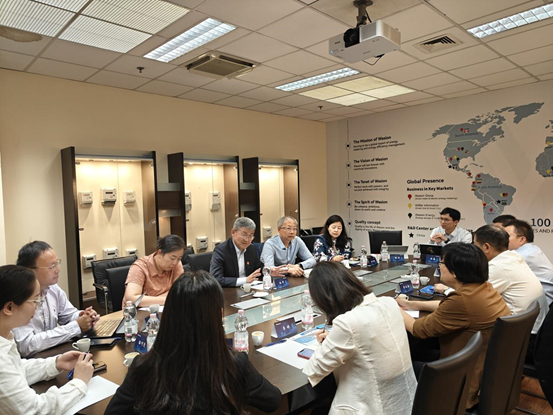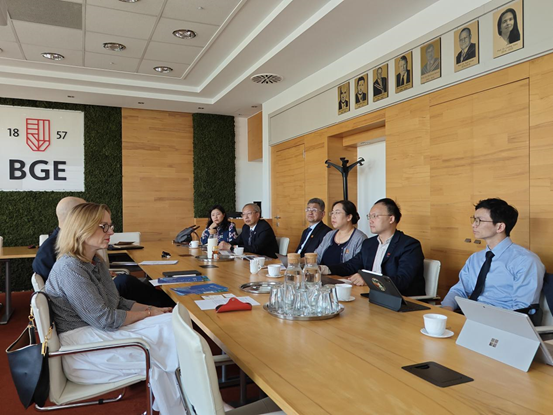 在威胜集团匈牙利公司,郑小平董事长等会见代表团。代表团实地调研了企业能源计量管理国际化人才紧缺的现状。针对企业国际市场需求大,但本地化员工缺乏专业知识和不了解中企文化的诉求,代表团结合学校创新港 200 余家合作企业资源,介绍了“校招共用”和长期人才合作机制,提出了产学研协同育人方案,并邀请威胜高管团队访问创新港,了解在港企业运作模式。双方力争共建联合中心或实验室,将企业真实项目转化为教学案例,围绕企业真实所需开设实践课程,实施 “双导师制” ,定向培养熟悉欧洲能源标准的本地化工程师。此外,双方就企业在职员工定制培训,开设“中资企业管理能力提升班”等进行了深入探讨。