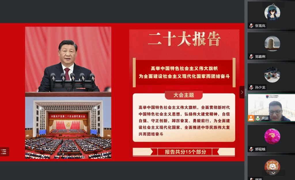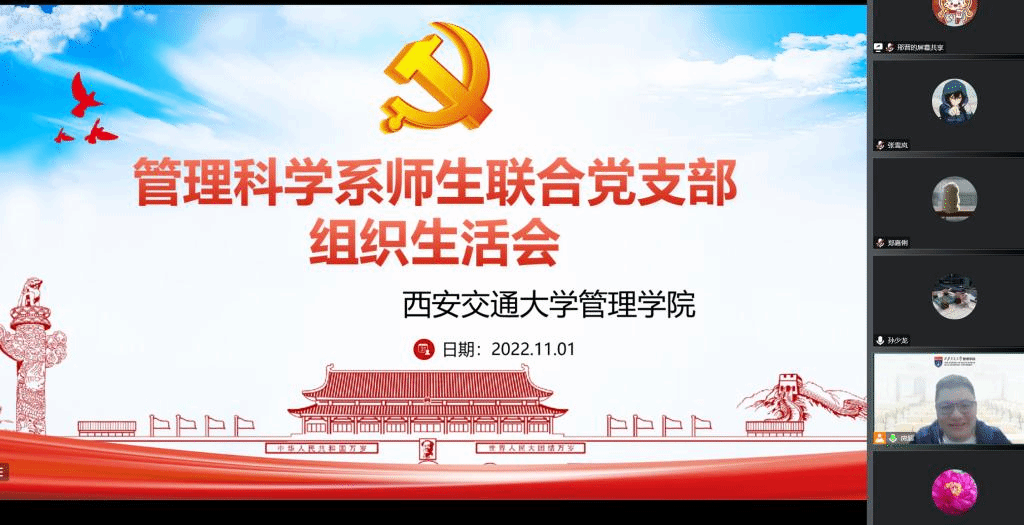 管理科学系师生联合党支部于11月1日召开了学习二十大精神专题组织生活会,支部全体党员及积极分子通过腾讯会议线上参加本次专题学习,会议由支部书记房超老师主持。