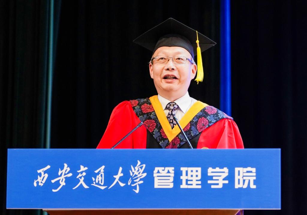 在即将分手之际,我衷心希望各位优秀学子要有三“学”。一是要终生学,大家知道今天的社会发展非常快,知识更新更快,很可能大家在校四年学习的书本知识有一半现在就过时了。所以终生学习将成为大家的新常态。二是要干中学,虽然大家学习了很多管理理论知识,博士同学做出了很好的研究成果,但是坦率地说,这些知识从管理实践角度讲还很肤浅。德鲁克讲过,管理是一种实践,其本质不在于知而在于行,其验证不在于逻辑而在于成果;其唯一权威就是成就。所以如果大家真的想要在社会上有所作为,理论与实践的结合,是大家必须要走的一条路。三是向榜样学。我们一大批优秀的师生就是我们在座每一个人学习的榜样,例如,汪应洛院士、李怀祖教授、席酉民教授,英雄的航天员院友,世界领先的隆基股份李振国总裁、360的周鸿祎总裁等企业家院友,他们身上的宝贵精神品质值得我们传承。希望大家能以我们这些优秀的师长、校友为榜样,不断地学习他们的经验,不断地锻炼自己,不断地成长,希望在未来让学院以你们为荣。