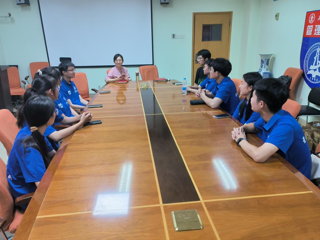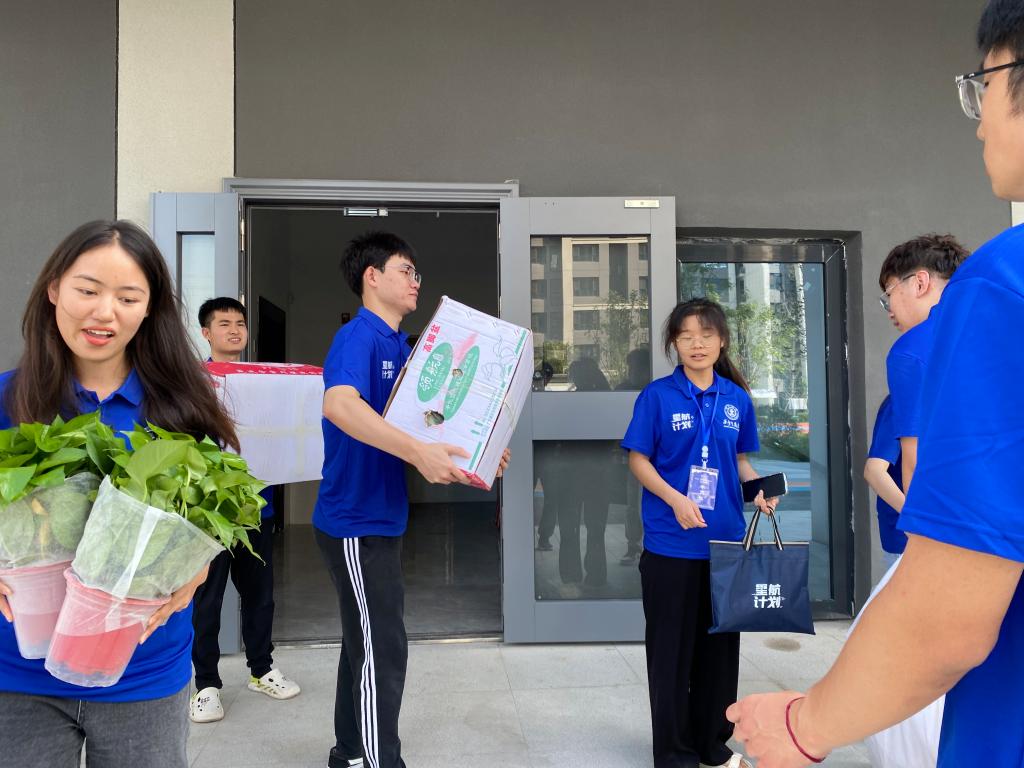 302会议室和学员们一起交流座谈,并给同学们带去学院的慰问大礼包。学员们分别介绍了各自的情况和参加星航计划的体会,两位老师详细了解了学生们的入住和生活情况,赞扬了大家积极参与、勇于担当的奉献精神,鼓励大家再接再厉,团结协作,共同完成后续的迎新工作。