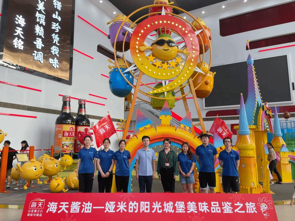 在对接负责人的带领下,实践团队参观了海天娅米的阳光城堡。娅米的阳光城堡是依托于企业生产园区建设而成的工业旅游景点项目,其通过实景展示、3D影院、古代实景雕塑等创新、有趣的方式方法,向团队成员全面展示了海天味业的历史、文化、规模、生产、技术、研发等各个方面的内容。通过参观,团队成员走近了海天味业创新打造的“5G+调味品产业链协同智造工厂”,了解到生产、车间、产线均应用智能在线监测系统,工厂数字化设备占总生产设备大于70%,最直观地感受到了智能制造时代现代化工厂的精髓。