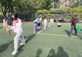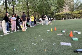 此次运动会采取积分制,首先以多人拔河及井字棋项目展开热场,热场项目后,伴随着同学们此起彼伏的欢呼与呐喊声,参赛队伍的热情逐渐被调动起来。热场项目结束后,各种更惊喜、更丰富多彩的各类趣味游戏开启,如考验协调能力与耐力的摸石头过河游戏,需要团队协作进行的青蛙部队和珠行千里游戏,锻炼合作能力的运水搬运工和乒乓球投手游戏以及有趣的投壶项目。在比赛中,各队展开激烈角逐,展现了比出风采、超越自我的体育精神。