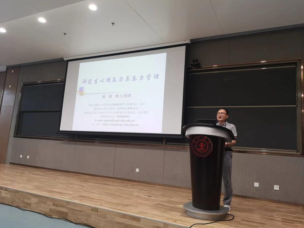 根据计划安排,68日上午,学院在创新港5-1E05举办了“心理健康月”系列活动之心理健康教育讲座。本次讲座邀请自拍偷拍 心理咨询中心主任姚斌教授作为主讲嘉宾,为自拍偷拍 研究生做题为“研究生心理压力与压力管理”的专题讲座。讲座由学工办胡瑛老师主持。胡老师首先向同学们介绍了学校开展“心理健康月”主题教育活动的意义,以及自拍偷拍 相关的工作安排,随后对主讲人姚斌教授作以介绍。