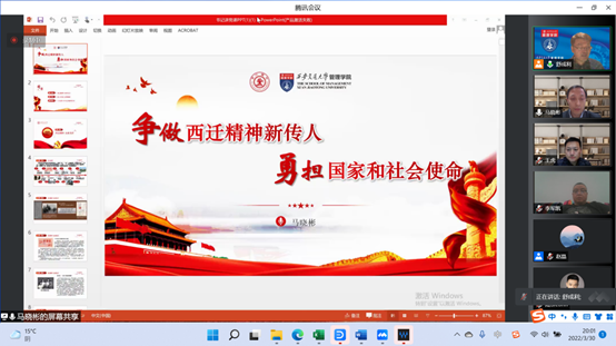 首先,马晓彬带领大家重温了习近平总书记来校考察时关于“西迁精神”的重要讲话精神,并通过一幅幅珍贵的历史照片和生动的西迁故事,以及迁校以来取得的办学成就和愿景目标,阐述了西迁老教授以自己的行动和担当诠释了“西迁精神”的核心是爱国主义、精髓是听党指挥跟党走,勉励广大师生要沿着前辈的奋斗足迹,用新的开拓和奉献,艰苦奋斗、顽强拼搏、勇于创新,传承好“西迁精神”,彰显西迁精神新的时代价值和内涵,主动为西部发展、国家建设贡献智慧和力量,以西迁精神新传人的担当和作为让“西迁精神”永放光芒。
