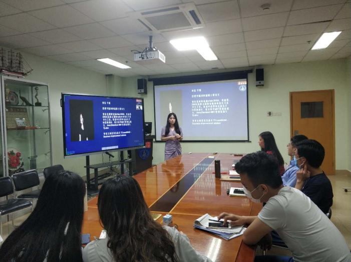 辅导员李明睿老师,2020届毕业生叶昭翔(建设银行总行部门经办岗),赵宇馨(宝洁公司品牌管理部),李洁(招商银行总行Fintech管理培训生),刘钰(埃克森美孚ExxonMobil -Business improvement advisor),麻选颖(中国建设银行股份有限公司陕西省分行),郑斐元(腾讯信息流搜索策略产品经理岗),胡泽龙(腾讯科技深圳反洗钱与风控方向工作)。本次分享交流会采用线上+线下的开展方式,更多的同学参与了其中,极大程度上解决了同学们当前的求职困惑。