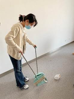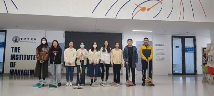 中厅集合,准备好清洁工具,便分工合作对中厅进行了清扫,随后成员也打扫了各自所在的教研室,圆满完成了活动任务。
