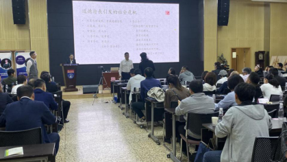 人文学院客座教授雷养超讲述课题“中国传统文化——《道德经》中的管理智慧”。生动地讲述了老子的思想核心,以及“道”转化为每个事物的“自然之性”,每个事物的自然之性,行为规则、变化动因等,并通过“道法”阐述企业管理的智慧。