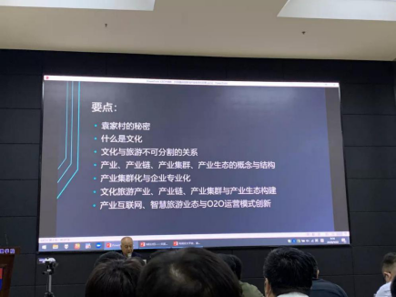 22日上午,由西安市工信委二级巡视员金乾生为大家深入讲解文旅融合创新与产业生态化发展,他以袁家村为案例分析从什么是文化、文化与旅游不可分割的关系、产业相关概念与结构、产业集群化与企业专业化、文化旅游产业等生态构建、以及互联网与智慧旅游等七方面进行讨论。