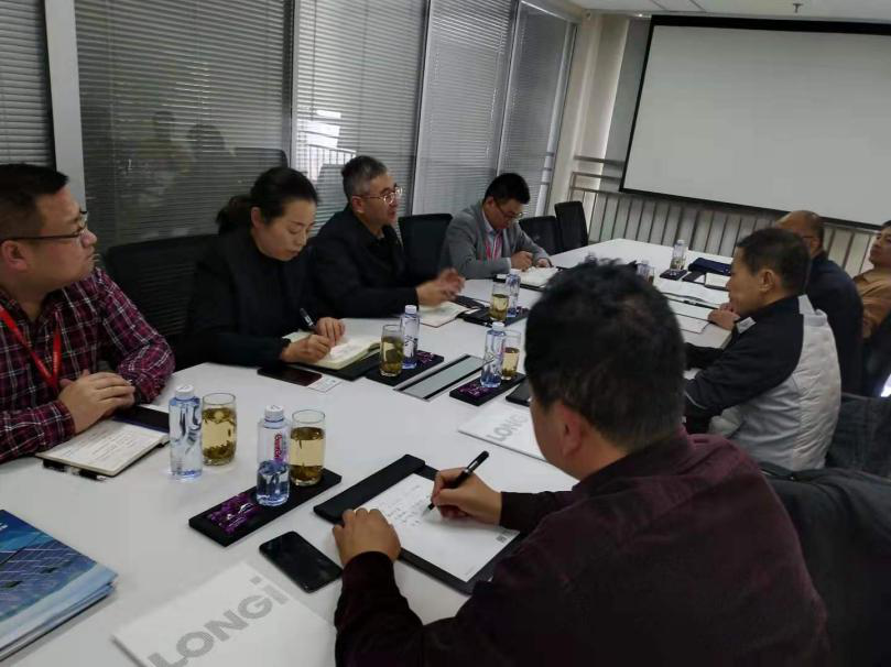 2019年11月21日下午由西安企业家学院牵线西安市商务局服务贸易处白杨,吴增军两位处长及西安银弹谷科技公司总经理侯海龙总经理一起到我们西安的明星企业隆基股份进行国家优惠政策解读和企业间的商务对接。隆基股份总裁李文学先生及其助理与对方进行了热烈的交流,并且表示非常感谢市委,市政府对民营企业的关心,使他们知道了以前不了解的优惠政策,错失了一些应该得到补助。侯海龙先生与隆基海外业务的市场开发合作,也进行了实质性进展。