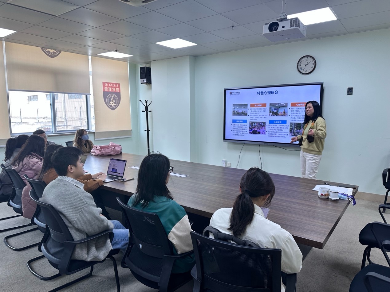 为了让心理委员们更好地开展特色心理班会,兼职辅导员还以2023级心理班会为例,进行了深入的经验分享——部分班级选择了美食分享、户外团建等多样化的形式,增进了同学之间的了解和信任。她提出特色心理班会要注重活动的趣味性和实效性,结合班级学生的特点和需求,设计出具有针对性和吸引力的活动方案。同时,心理委员要在班会中发挥好组织和引导作用,鼓励同学们积极参与,确保班会达到预期的效果。