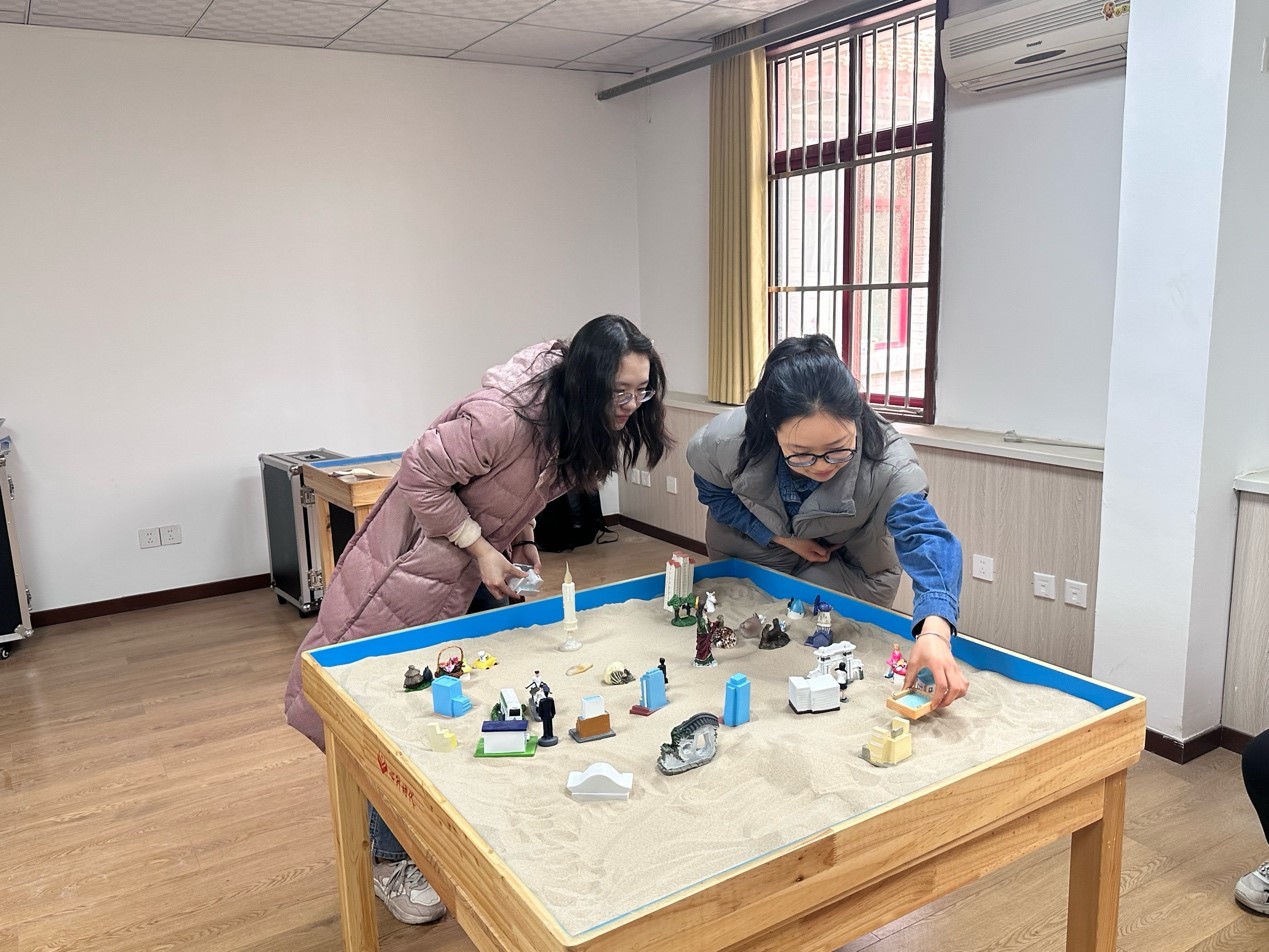 推进会结束后,辅导员胡老师带领2024级心理委员前往学生心理发展指导中心参加了心理沙盘体验活动。闫琼老师精心组织了此次活动,为心理委员们带来了一次独特的心灵探索之旅。