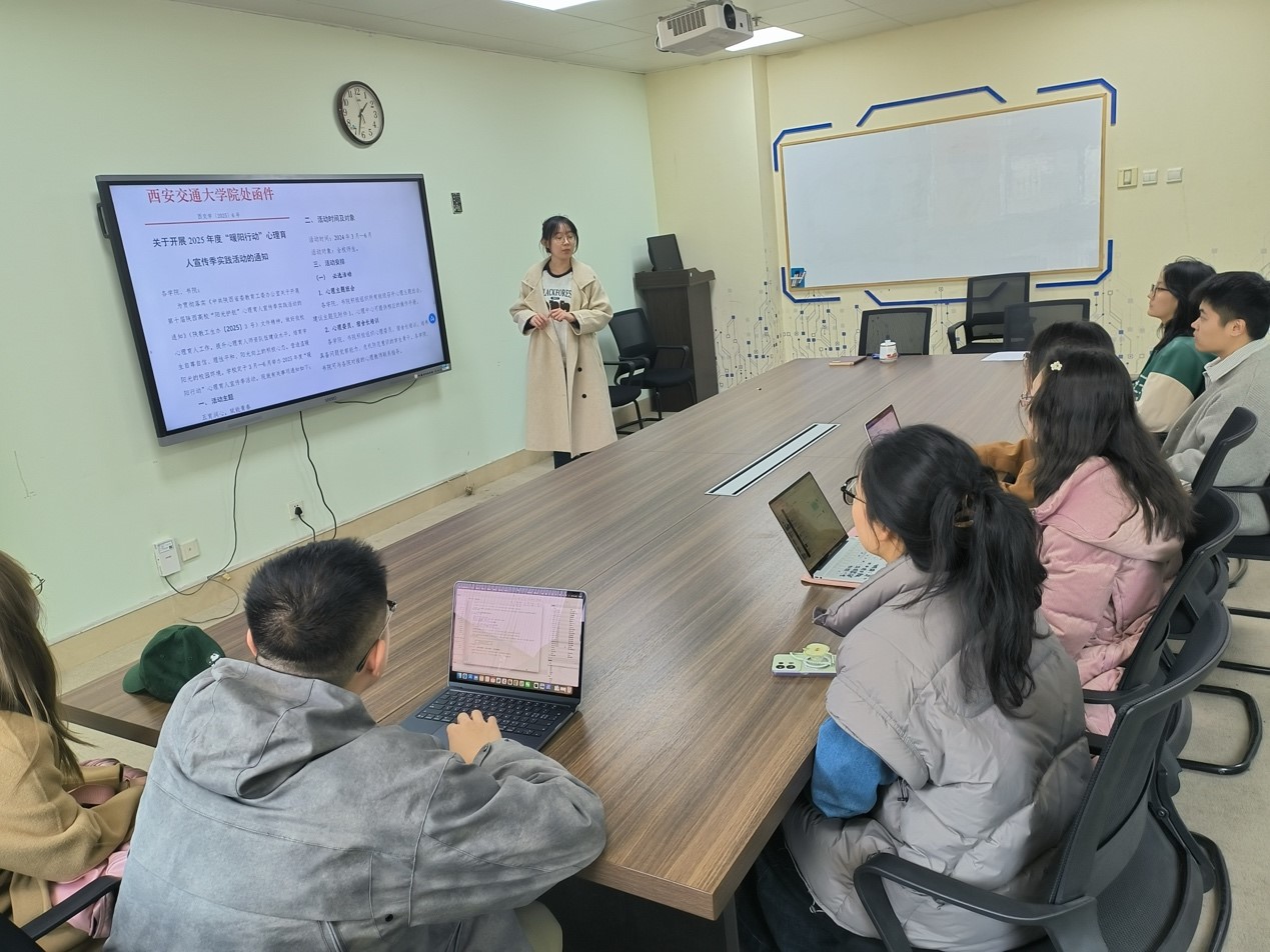 会议伊始,兼职辅导员许若妍详细介绍了学院4月和5月的心理育人工作安排。4月学院将组织学生前往某文化基地开展美育实践,通过参观和亲身体验陶冶情操,涵养学生心灵。同时组织各班级开展心理主题班会,引导学生关注自身心理健康,增进彼此的了解。5月将组织学生积极参与学校心理健康科普知识竞赛,增加同学们的心理知识储备,促进其健康成长。学院计划设立心灵驿站,对于希望倾诉烦恼的学生提供一对一的服务。此外,还将在5月25日心理健康日开展创意活动,通过新颖的形式,让同学们在轻松愉快的氛围中释放压力,表达自我,并增进对心理健康重要性的认识。