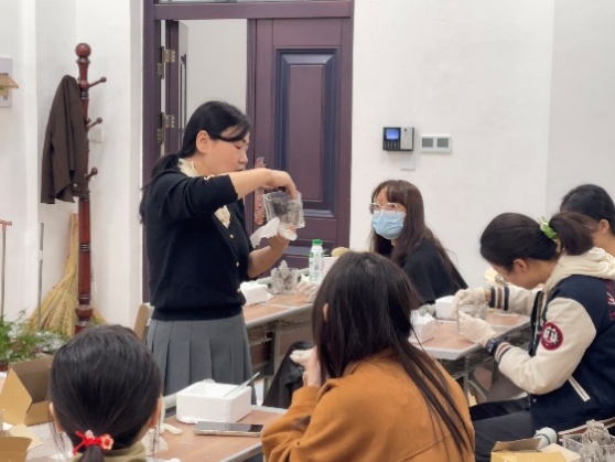 S4105班的刘东辉同学补充说:“今天参加了盆景制作课程,感觉非常有趣和放松。盆景不仅是一种植物艺术,更是一种表达自然和哲理的方式。在学习如何制作盆景的过程中,我发现它不仅仅是简单的修剪和种植,更需要耐心、细致和对自然的尊重。”