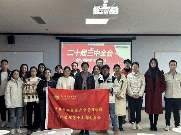 313室开展了2024年11月例行的党组织生活会。此次会议主题为“二十届三中全会会议精神解读与学习”。会议由组织管理博士支部书记易磊主持,周密老师列席指导,线上线下同时开展,共出席28人。