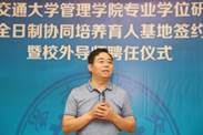 专业学位研究生的培养成效。马晓彬书记从交大西迁及创新港建设谈起,指出高等教育不能滞后于国家社会需求,创新型人才培养过程中不可或缺的是实践力的培养,强调人才培养需与国家战略和社会需求相结合,衷心期望协同育人基地和校外导师可以继续更为深入地参与到管院的专业学位研究生培养过程中。